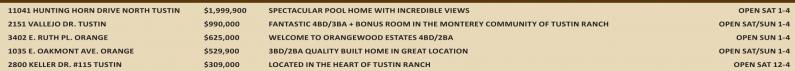 2151 VALLEJODR. TUSTIN $990,000 FANTASTIC4BD/3BA +BONUS ROOM INTHE MONTEREYCOMMUNITY OF TUSTINRANCH OPENSAT/SUN 1-4