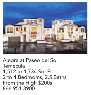 Alegre atPaseo del Sol Temecula 1,512 to 1,734 Sq. Ft. 2to4Bedrooms, 2.5 Baths From the High $200s 866.951.3900