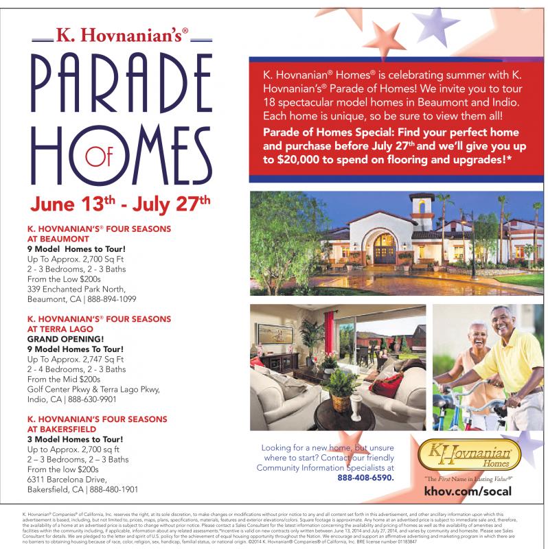 Parade of Homes! We invite you to tour 18 spectacular model homes in Beaumont and Indio. Each home is unique, so be sure to view them all! to $20,000 to spend on flooring and upgrades!*