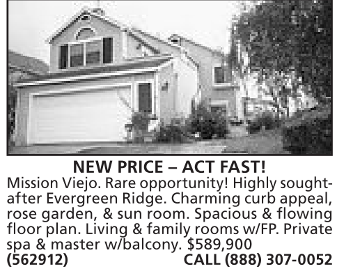 MissionViejo. Rare opportunity! HighlysoughtafterEvergreen