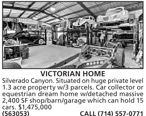 equestrian dream home w/detached massive 2,400 SF shop/barn/garage which can hold 15 cars. $1,475,000 (563053) CALL (714) 557-0771