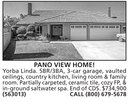 Yorba Linda. 5BR/3BA, 3-car garage, vaulted