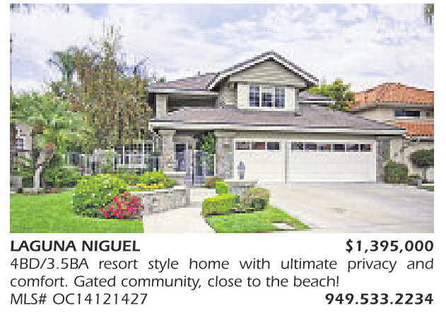 LAGUNA NIGUEL $1,395,000 4BD/3.5BA resort style home with ultimate privacy and comfort. Gated community, close to the beach! MLS# OC14121427 949.533.2234