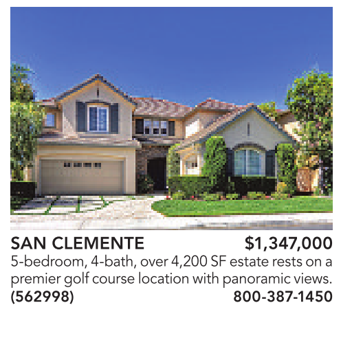 SAN CLEMENTE $1,347,000 5-bedroom,4-bath, over4,200 SF estate restsona premiergolf course location with panoramicviews. (562998) 800-387-1450