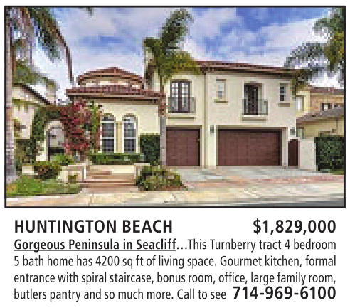 HUNTINGTON BEACH $1,829,000 Gorgeous Peninsula in Seacliff…This Turnberry tract 4bedroom 5bathhome has4200sqftofliving space.Gourmet kitchen,formal entrance with spiralstaircase,bonus room,office,large family room, butlers pantry andsomuch more.Calltosee 714-969-6100