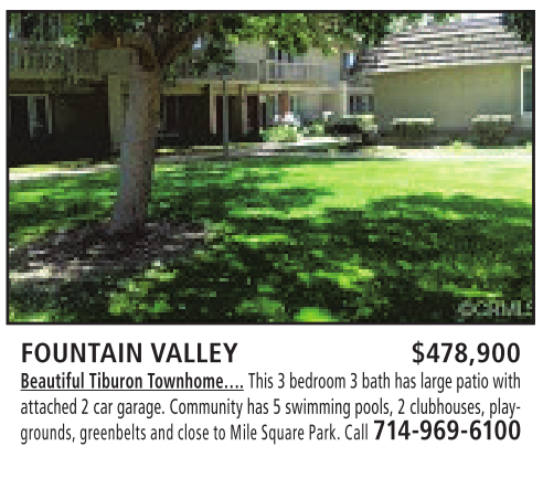 FOUNTAIN VALLEY $478,900 Beautiful Tiburon Townhome…. This 3bedroom 3bath has large patio with