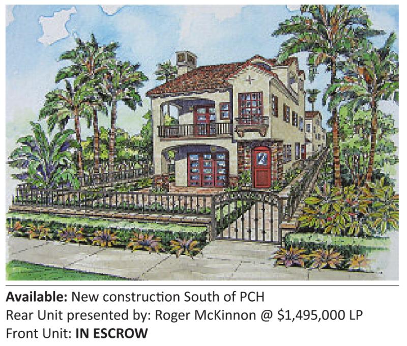 Available: New construc on South of PCH Rear Unit presented by: Roger McKinnon @ $1,495,000 LP Front Unit: IN ESCROW
