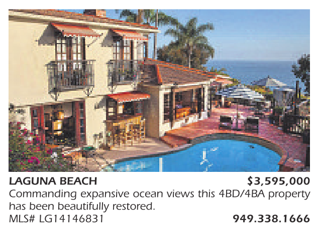 LAGUNA BEACH $3,595,000 Commanding expansive ocean views this 4BD/4BA property has been beautifully restored. MLS# LG14146831 949.338.1666