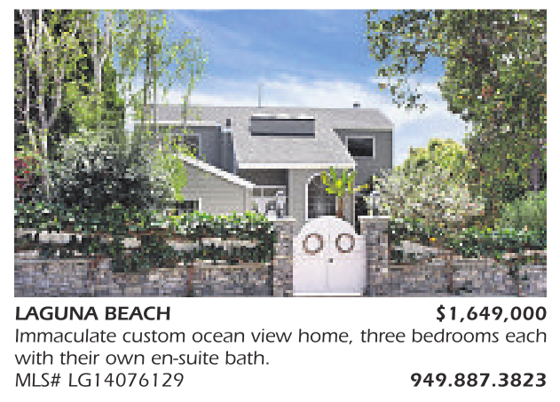 LAGUNA BEACH $1,649,000 Immaculate custom ocean view home, three bedrooms each with their own en-suite bath. MLS# LG14076129 949.887.3823