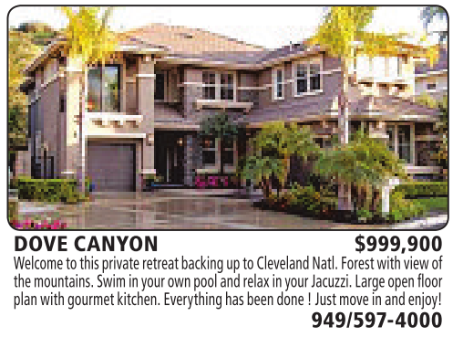 DOVE CANYON $999,900 Welcome to this private retreat backinguptoClevelandNatl. Forest with view of