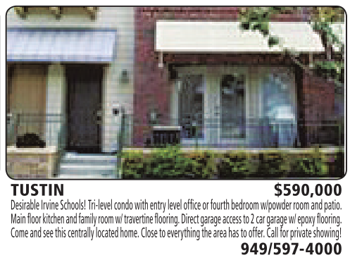 TUSTIN $590,000 Desirable Irvine Schools!Tri-level condowithentry level officeorfourth bedroomw/powder room andpatio.