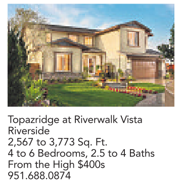 Topazridge at Riverwalk Vista Riverside 2,567 to 3,773 Sq. Ft. 4to6Bedrooms, 2.5 to 4Baths From the High $400s 951.688.0874