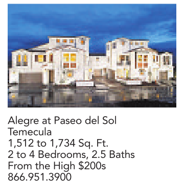 Alegre atPaseo del Sol Temecula 1,512 to 1,734 Sq. Ft. 2to4Bedrooms, 2.5 Baths From the High $200s 866.951.3900