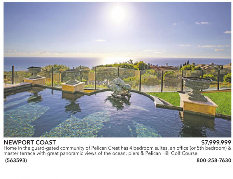 NEWPORT COAST $7,999,999 Home in the guard-gated community of Pelican Crest has 4bedroom suites, an office (or 5th bedroom) & master terrace with great panoramic views of the ocean, piers & Pelican Hill Golf Course.
