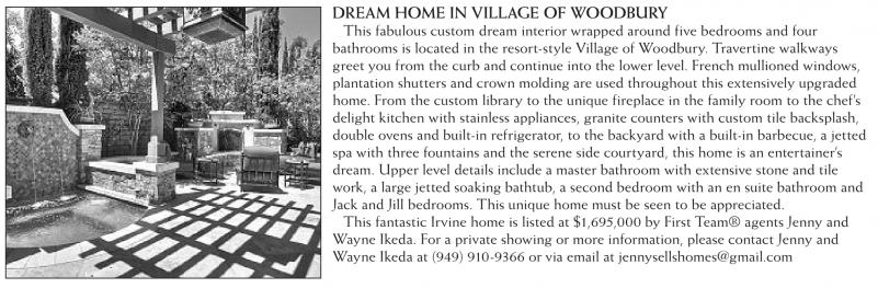 This fantastic Irvine home is listed at $1,695,000 by First Team® agents Jenny and Wayne Ikeda. For a private showing or more information, please contact Jenny and Wayne Ikeda at (949) 910-9366 or via email at jennysellshomes@gmail.com