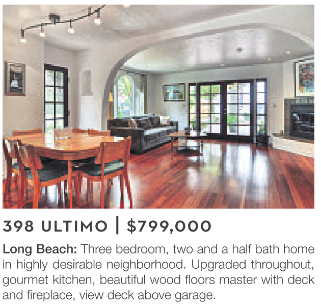 Long Beach: Three bedroom, two and a half bath home in highly desirable neighborhood. Upgraded throughout, gourmet kitchen, beautiful wood floors master with deck and fireplace, view deck above garage.