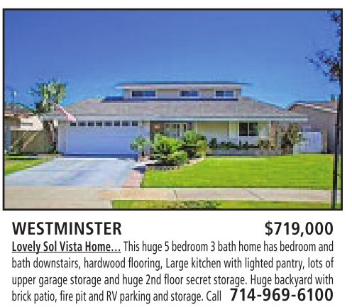 WESTMINSTER $719,000 Lovely Sol VistaHome… This huge 5bedroom3bathhome hasbedroomand
