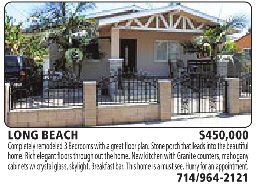 LONG BEACH $450,000 Completelyremodeled3Bedrooms with agreat floorplan. Stone porch that leadsintothe beautiful home.Richelegantfloors through out thehome.New kitchen with Granite counters,mahogany cabinets w/ crystalglass,skylight, Breakfastbar.This home is amust see. Hurry for an appointment.