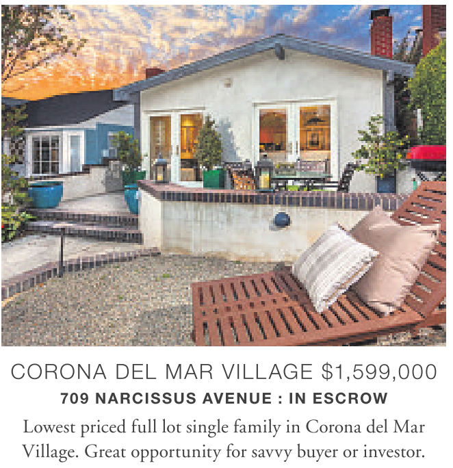 709 NARCISSUS AVENUE : IN ESCROW Lowest priced full lot single family in Corona del Mar Village. Great opportunity for savvy buyer or investor.