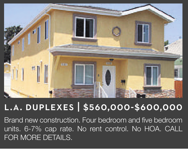 Brand new construction. Four bedroom and five bedroom units. 6-7% cap rate. No rent control. No HOA. CALL FOR MORE DETAILS.