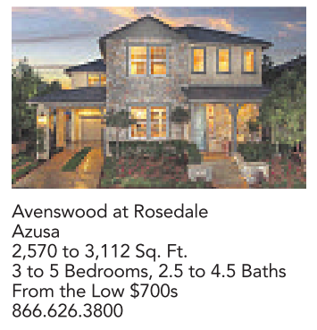 Avenswood at Rosedale Azusa 2,570 to 3,112 Sq. Ft. 3to5Bedrooms, 2.5 to 4.5 Baths From the Low $700s 866.626.3800