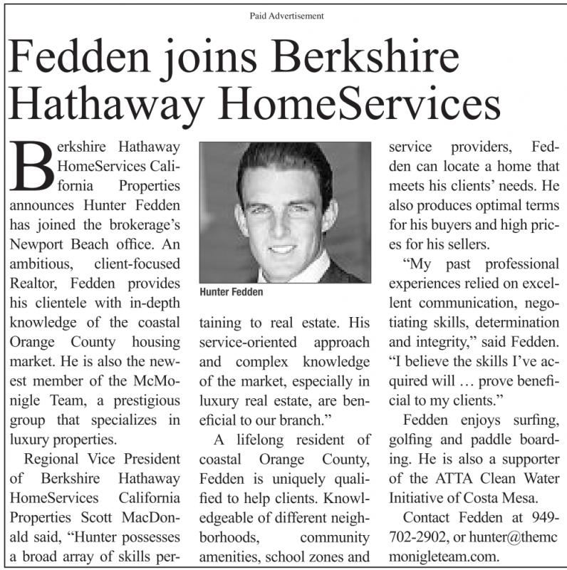 Contact Fedden at 949- 702-2902, or hunter@themc monigleteam.com.