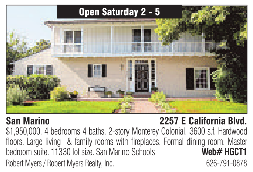 $1,950,000. 4bedrooms 4baths. 2-story Monterey Colonial. 3600 s.f.Hardwood floors. Large living &family rooms with fireplaces. Formal dining room. Master bedroom suite. 11330 lot size. San Marino Schools Web# HGCT1