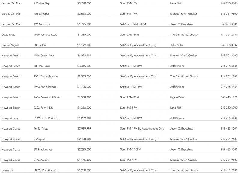 Costa Mesa 1828 Jamaica Road $1,395,000 Sun 12PM-3PM The Carmichael Group 714.751.2181
