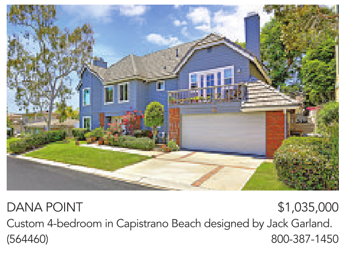 DANA POINT $1,035,000 Custom 4-bedroom in Capistrano Beach designed by Jack Garland. (564460) 800-387-1450