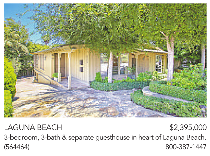 LAGUNA BEACH $2,395,000 3-bedroom, 3-bath &separate guesthouse in heart of Laguna Beach. (564464) 800-387-1447