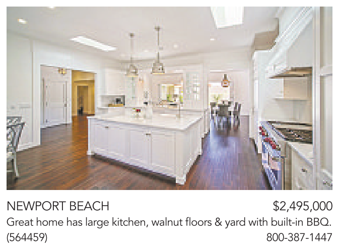 NEWPORT BEACH $2,495,000 Great home has large kitchen, walnut floors &yard with built-in BBQ. (564459) 800-387-1447