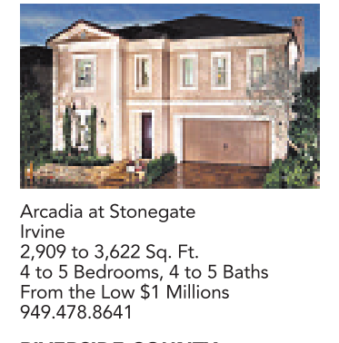 Arcadia at Stonegate Irvine 2,909 to 3,622 Sq. Ft. 4to5Bedrooms, 4to5Baths From the Low $1 Millions 949.478.8641