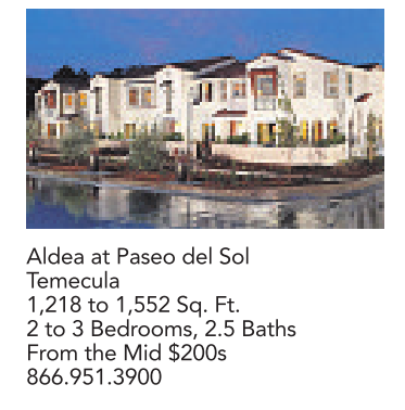 Aldea at Paseo del Sol Temecula 1,218 to 1,552 Sq. Ft. 2to3Bedrooms, 2.5 Baths From the Mid $200s 866.951.3900