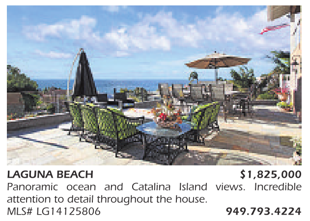 LAGUNA BEACH $1,825,000 Panoramic ocean and Catalina Island views. Incredible attention to detail throughout the house. MLS# LG14125806 949.793.4224