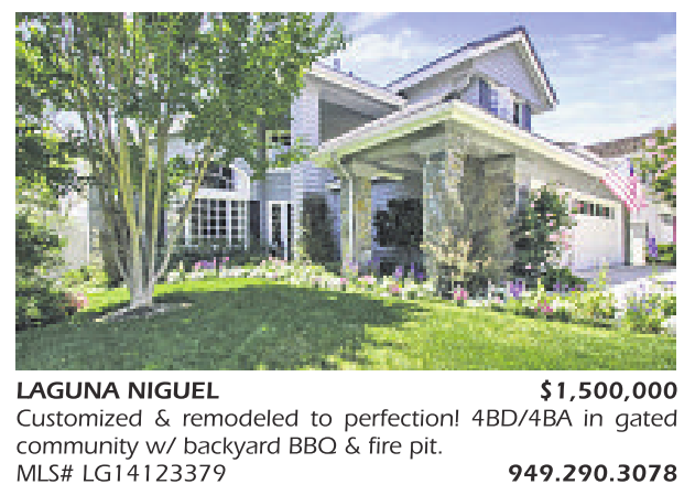 LAGUNA NIGUEL $1,500,000 Customized & remodeled to perfection! 4BD/4BA in gated community w/ backyard BBQ & fire pit. MLS# LG14123379 949.290.3078