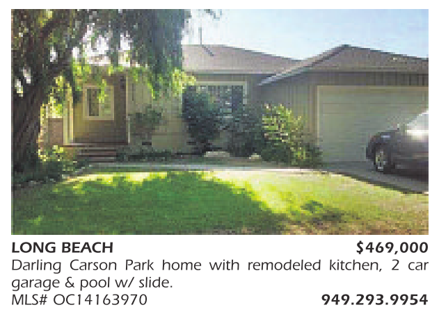 LONG BEACH $469,000 Darling Carson Park home with remodeled kitchen, 2 car garage & pool w/ slide. MLS# OC14163970 949.293.9954