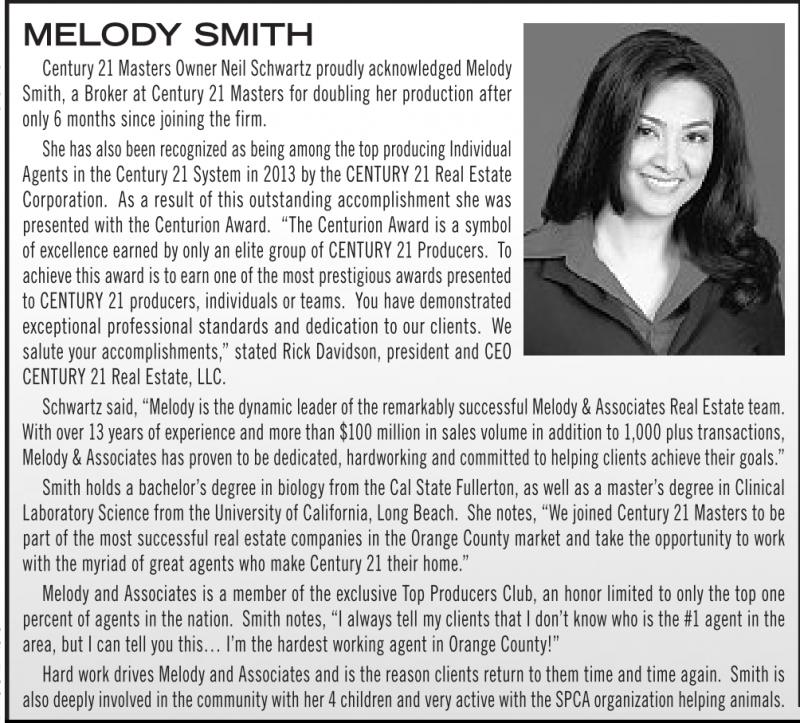 Schwartzsaid, “Melody is thedynamic leader of theremarkablysuccessfulMelody &AssociatesRealEstate team.