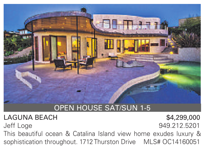 LAGUNA BEACH $4,299,000 Jeff Loge 949.212.5201 This beautiful ocean & Catalina Island view home exudes luxury & sophistication throughout. 1712 Thurston Drive MLS# OC14160051