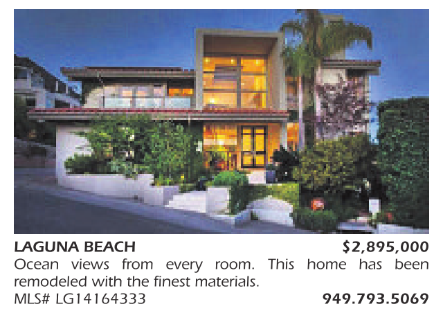 LAGUNA BEACH $2,895,000 Ocean views from every room. This home has been remodeled with the finest materials. MLS# LG14164333 949.793.5069
