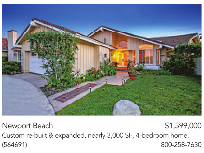 Newport Beach $1,599,000 Custom re-built &expanded, nearly 3,000 SF, 4-bedroom home. (564691) 800-258-7630