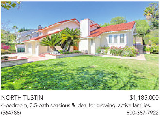 NORTH TUSTIN $1,185,000 4-bedroom, 3.5-bath spacious &ideal for growing, active families. (564788) 800-387-7922