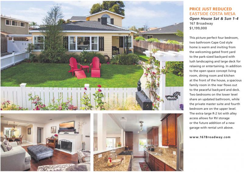 PRICE JUST REDUCED EASTSIDE COSTA MESA Open House Sat & Sun 1-4 167 Broadway $1,199,000