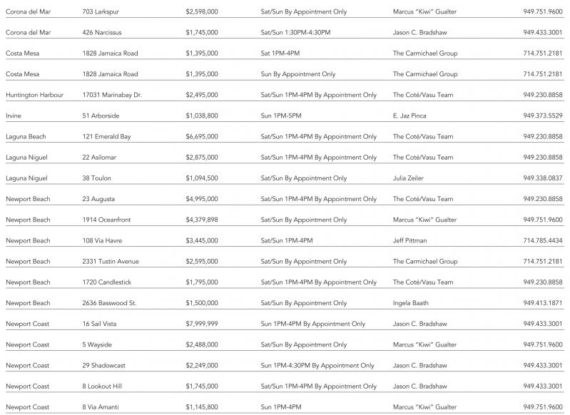 Costa Mesa 1828 Jamaica Road $1,395,000 Sat 1PM-4PM The Carmichael Group 714.751.2181