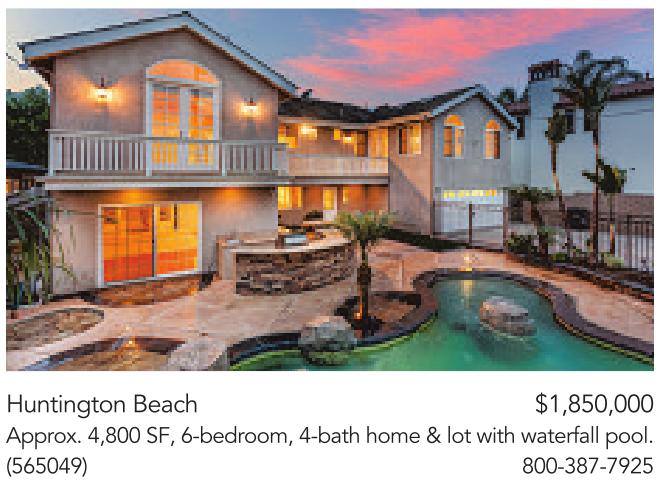 Huntington Beach $1,850,000 Approx. 4,800 SF, 6-bedroom, 4-bath home &lot with waterfall pool. (565049) 800-387-7925
