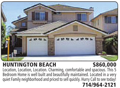 HUNTINGTON BEACH $860,000 Location, Location, Location. Charming, comfortable and spacious. This 5 Bedroom Home is well built and beautifully maintained. Located inavery quietFamilyneighborhoodand pricedtosellquickly.Hurry Call to seetoday! 714/964-2121 See also