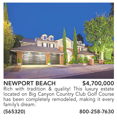 NEWPORT BEACH $4,700,000 Rich with tradition & quality! This luxury estate located on Big Canyon Country Club Golf Course has been completely remodeled, making it every family’s dream. (565320) 800-258-7630