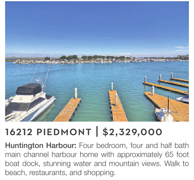 Huntington Harbour: Four bedroom, four and half bath main channel harbour home with approximately 65 foot boat dock, stunning water and mountain views. Walk to beach, restaurants, and shopping.