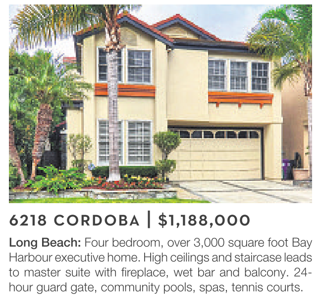Long Beach: Four bedroom, over 3,000 square foot Bay Harbour executive home. High ceilings and staircase leads to master suite with fireplace, wet bar and balcony. 24- hour guard gate, community pools, spas, tennis courts.