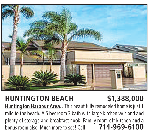 mile to the beach. A5bedroom 3bath with large kitchen w/island and plenty ofstorage and breakfast nook. Family room off kitchen and a bonusroomalso. Much more to see! Call 714-969-6100