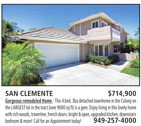 SAN CLEMENTE $714,900 Gorgeous remodeled Home -This 4bed, 3ba detachedtownhome in theColony on